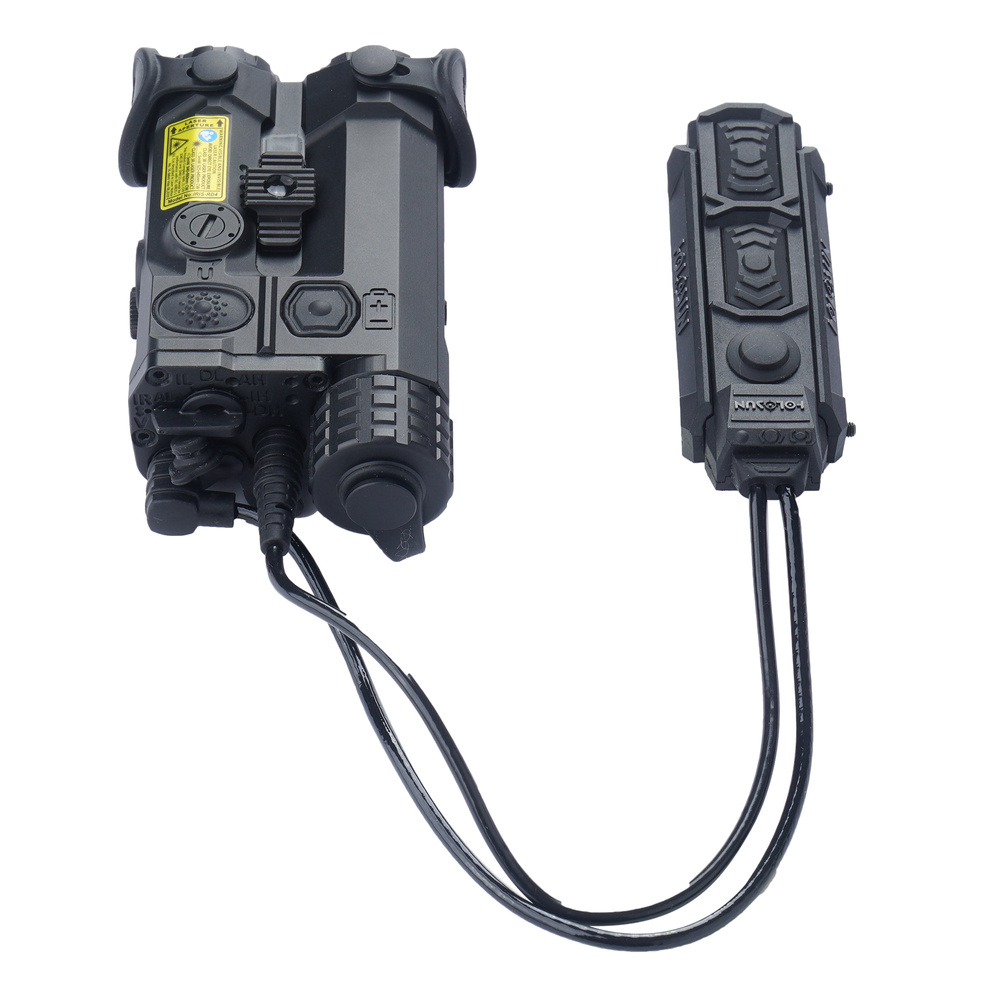 - Laserowy wskaźnik celu z dwiema wiązkami, latarką oraz iluminatorem IR